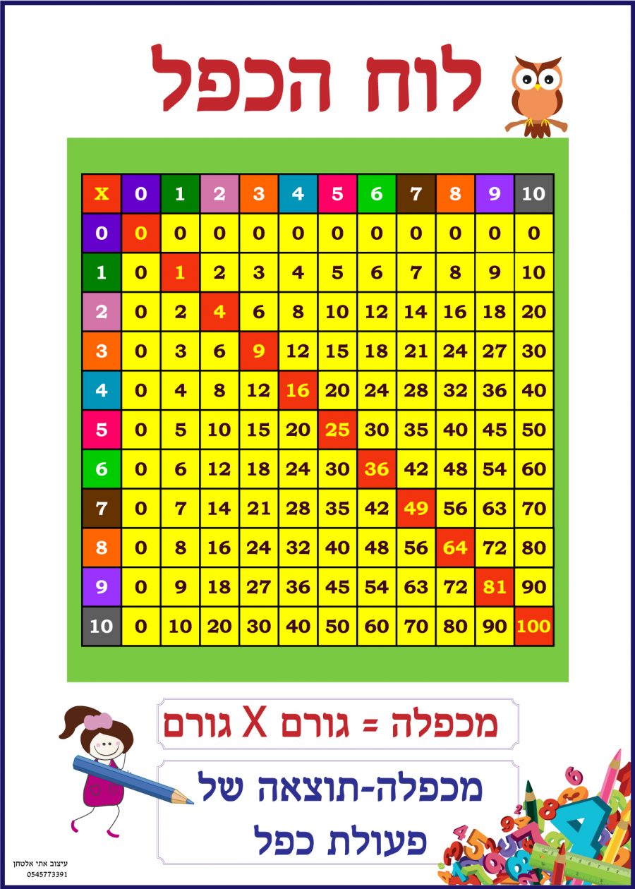 לוח כפל מעוצב. מודפס על חומר סינתטי מיוחד ואיכותי.